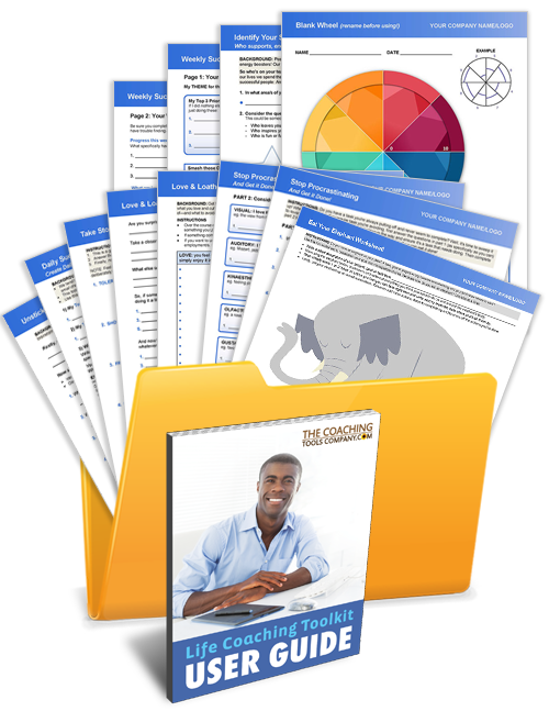 This life coaching toolkit has all the tools you need for your toolbox! Help your clients take stock, connect deeply with themselves, get stuff done and make positive life changes—faster!